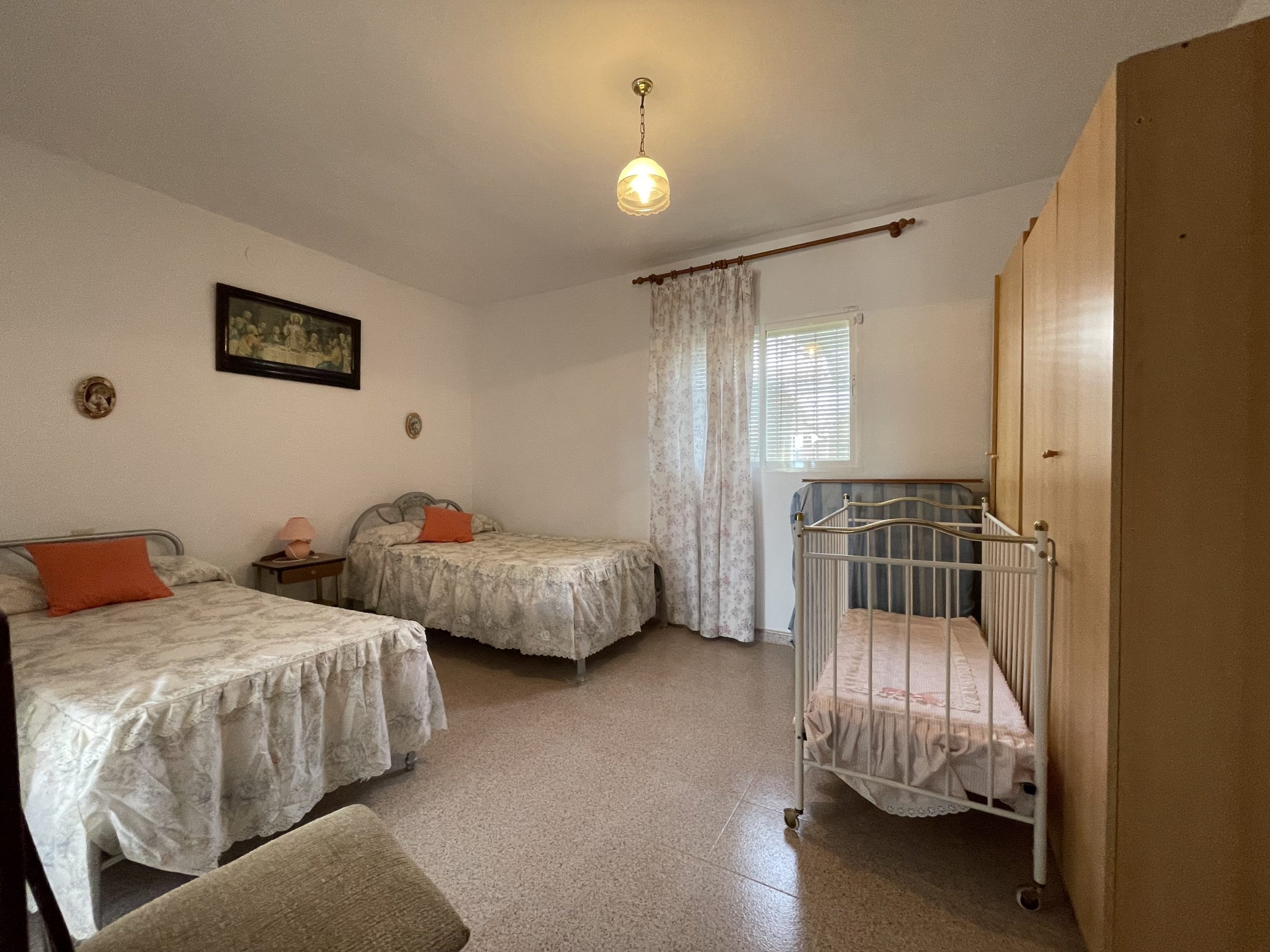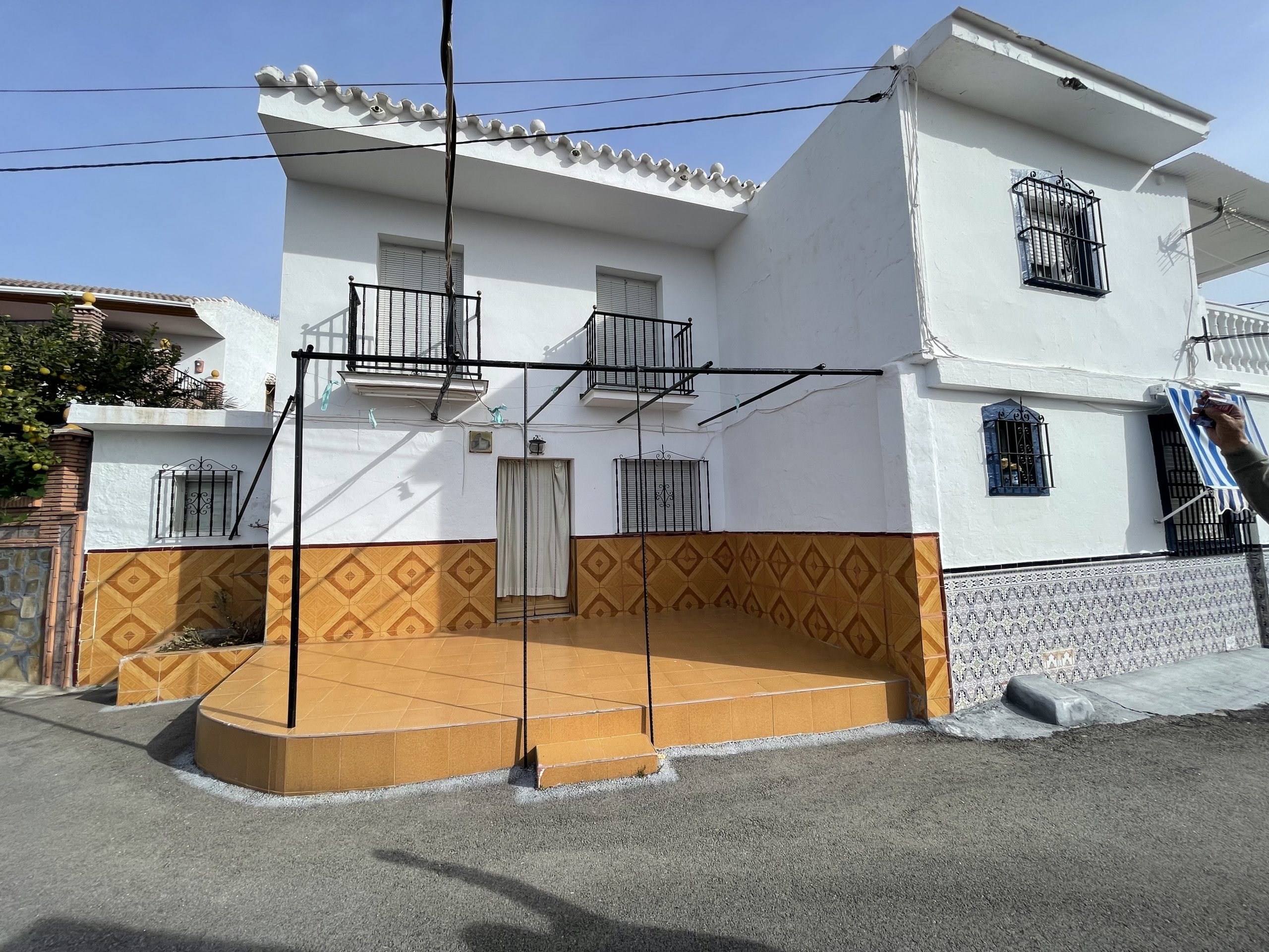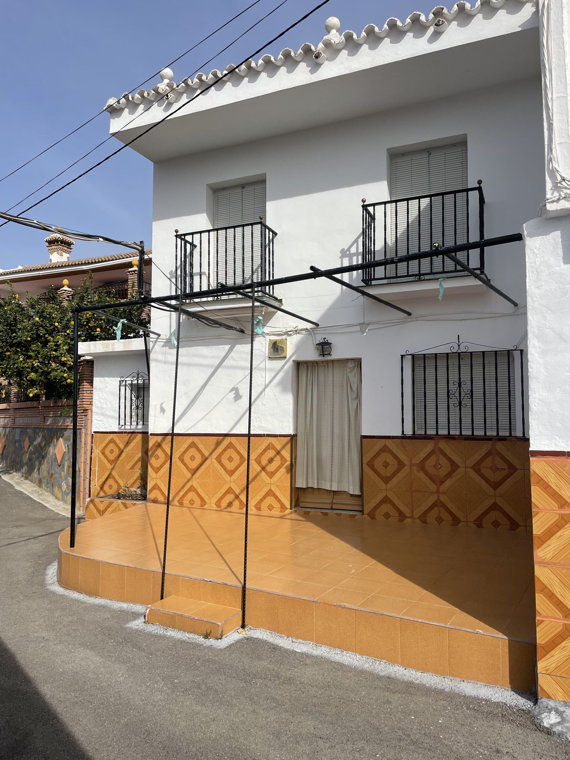 La vivienda se divide a su vez en dos grandes edificaciones de 109m², aproximados, cada una. Ideal para contar con dos viviendas independientes. La primera edificación se distribuye en: planta baja con porche exterior, salón, amplio baño y un dormitorio doble. En la primera planta nos encontramos con tres dormitorios dobles con balcón con vistas al pueblo y la sierra. Igualmente, cuenta con una amplia terraza en su cubierta. La primera planta y la terraza han sido reformados recientemente.