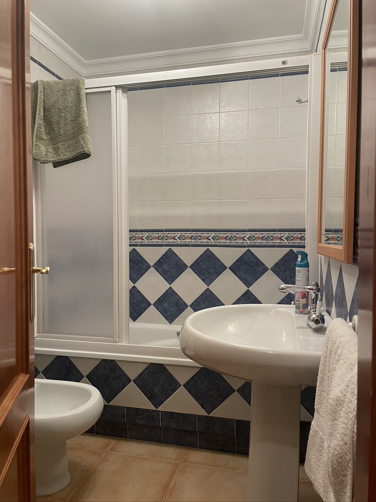 En la planta alta tenemos un pasillo, 3 dormitorios, 1 de ellos con balcon y armarios empotrados y 1 baño completo con bañera.